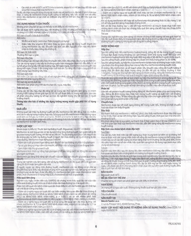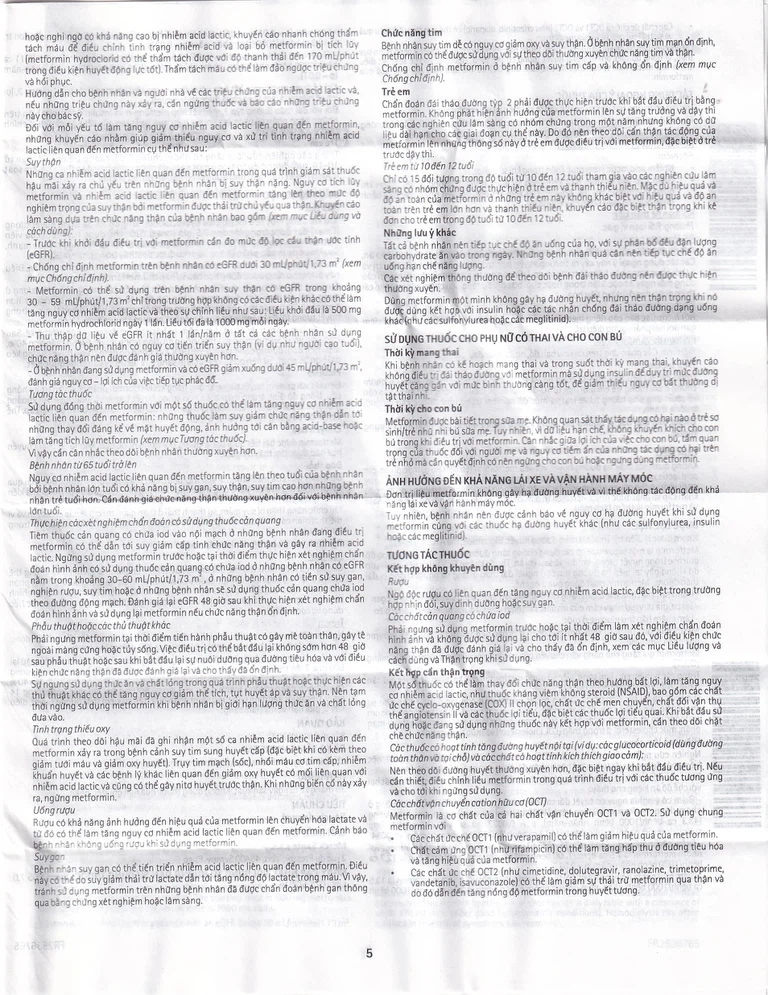 Kết hợp với Insulin: Metformin hydrochloride kết hợp với Insulin đạt được kiểm soát đường huyết tốt hơn. Uống metformin với liều thông thường viên bao phim chứa 500 hoặc 850mg metformin 2-3 lần trong ngày, trong khi liều insulin điều chỉnh dựa vào đo nồng độ đường trong máu.