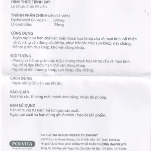 - Chondroitin Sulfate: Hỗ trợ giữ nước cho sụn, giúp bôi trơn khớp và góp phần làm chậm quá trình thoái hóa.