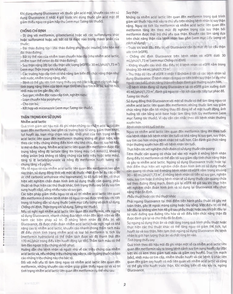 Chất cản quang có iod: Sử dụng các chất cản quang chứa iod đường tĩnh mạch có thể dẫn đến suy thận, gây tích tụ metformin và tăng nguy cơ nhiễm acid lactic. Tùy vào chức năng thận, phải ngưng sử dụng Glucovance 48 giờ trước hoặc ngay thời điểm xét nghiệm và không sử dụng lại cho tới 48 giờ sau đó, chỉ dùng lại sau khi chức năng thận đã được đánh giá lại và cho thấy trở lại bình thường.