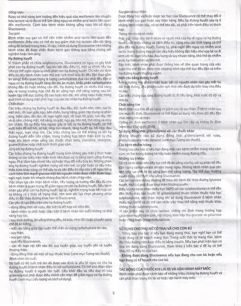 Vì thành phần có chứa sulphonylurea, Glucovance có nguy cơ gây khởi phát cơn hạ đường huyết. Tăng liều thuốc từ từ có thể ngăn ngừa tình trạng này.