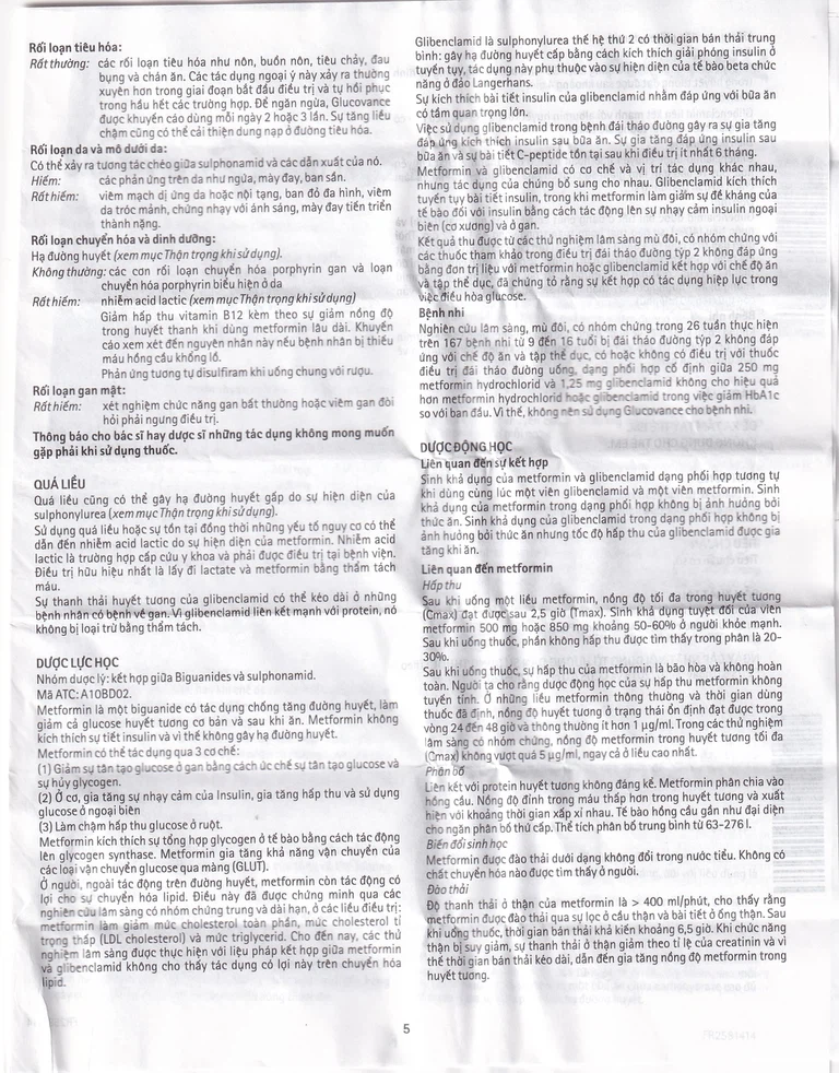 Các tác dụng không mong muốn khi dùng Glucovance 500mg/2,5mg mà bạn có thể gặp.