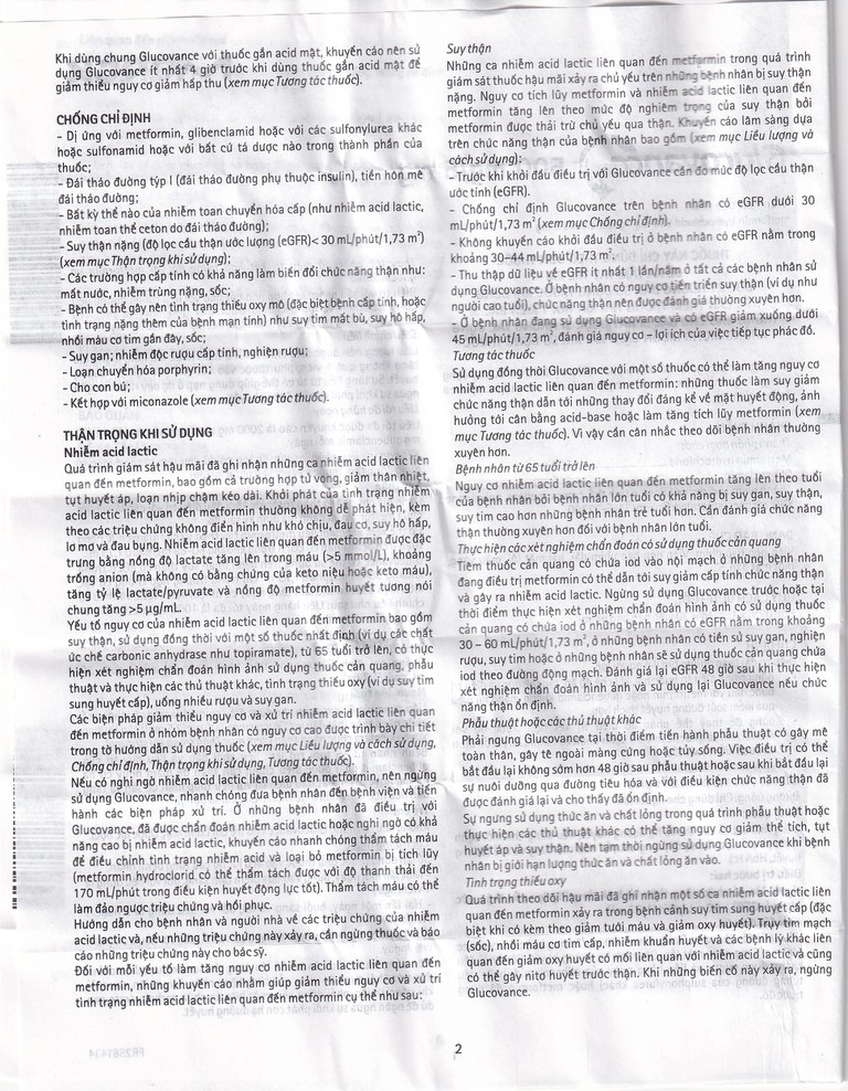 Ngừng sử dụng Glucovance trước hoặc tại thời điểm thực hiện xét nghiệm chẩn đoán hình ảnh có sử dụng thuốc cản quang có chứa iod ở những bệnh nhân có eGFR nằm trong khoảng 30 – 60m/phút/1,73m2, ở những bệnh nhân có tiền sử suy gan, nghiện rượu, suy tim hoặc ở những bệnh nhân sẽ sử dụng thuốc cản quang chứa iod theo đường động mạch.