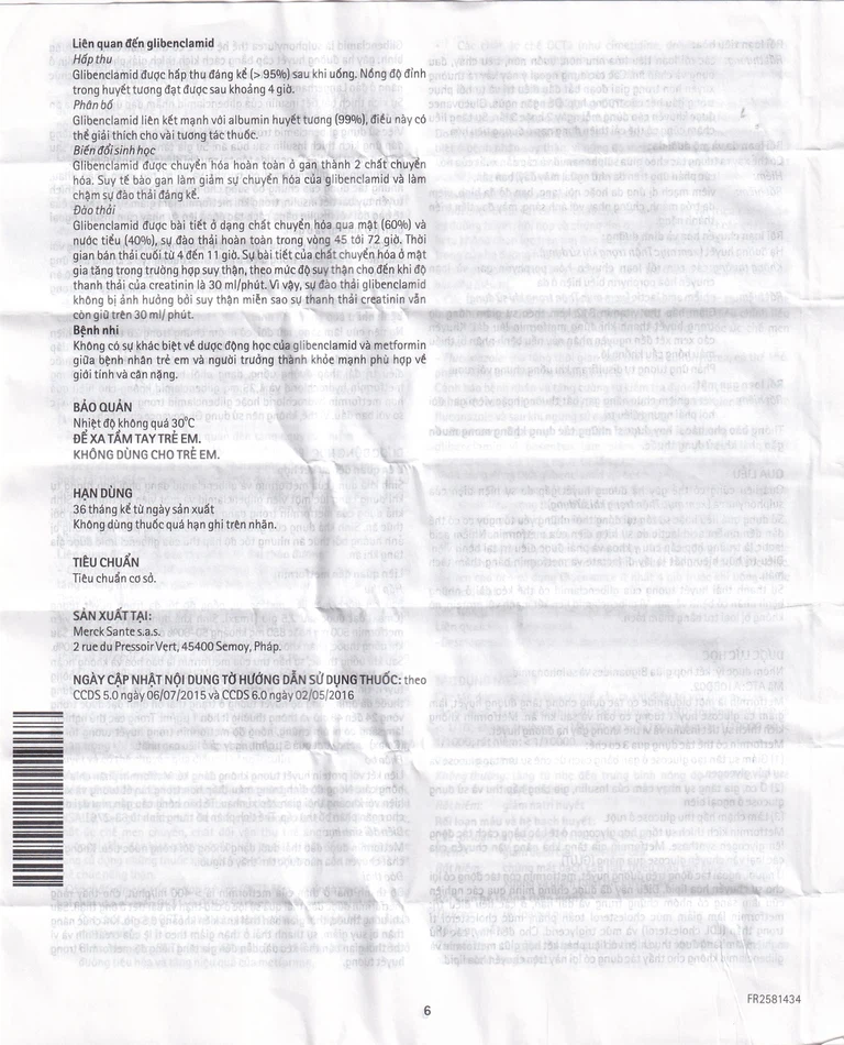 Liều tối đa hằng ngày: Khuyến cáo là 2000mg metformin hydrochloride/20mg glibenclamid mỗi ngày.