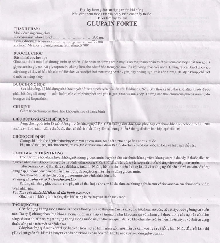 Có thể dùng đơn độc hoặc phối hợp với thuốc khác như chondroitin 1200 mg/ngày.