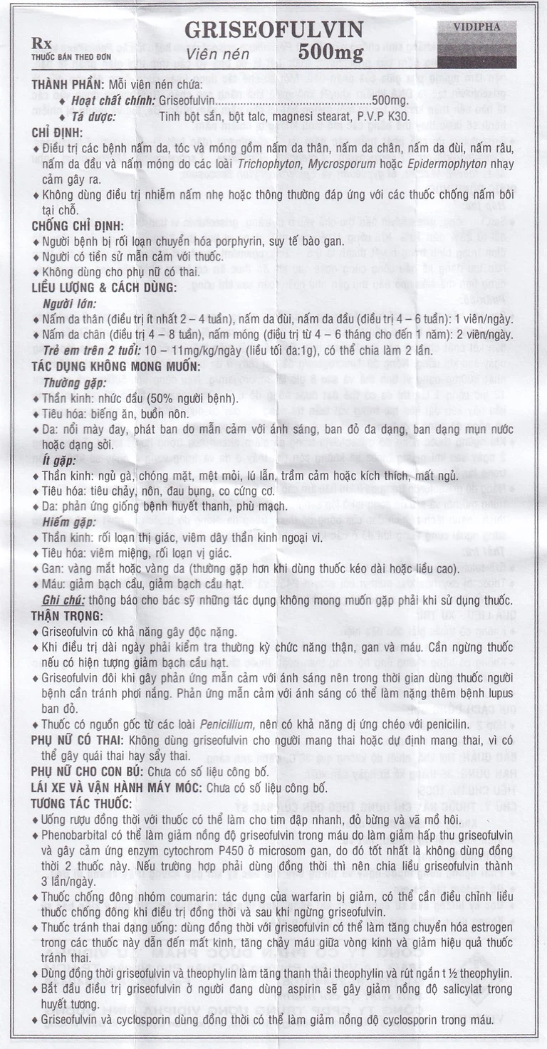 Trước khi sử dụng thuốc Griseofulvin bạn cần đọc kỹ hướng dẫn sử dụng và tham khảo thông tin bên dưới.