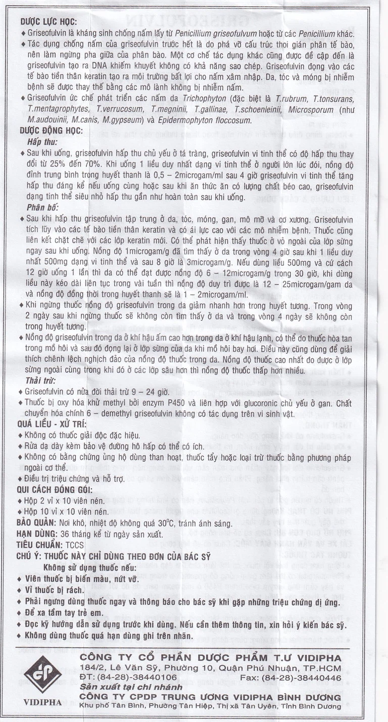 Cách dùng Thuốc Griseofulvin 500mg