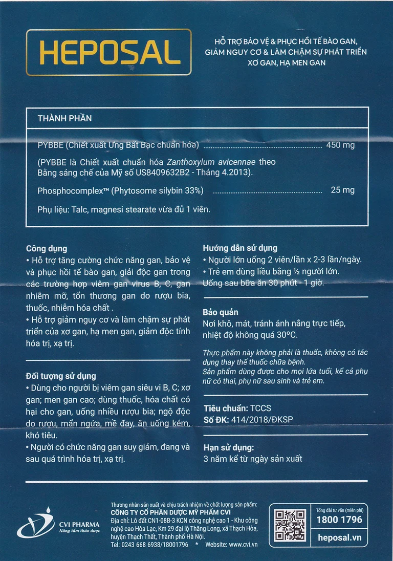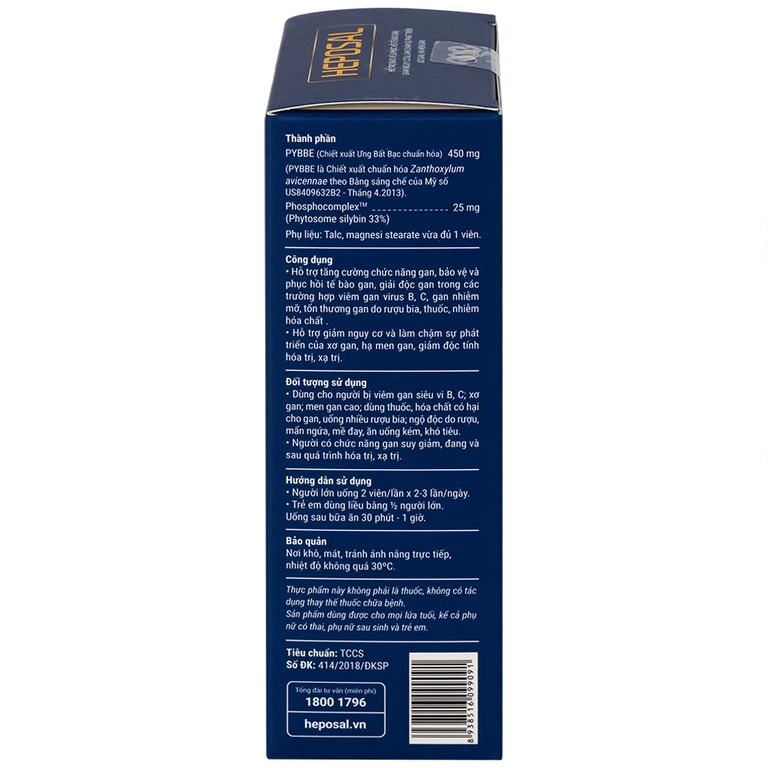 Viên uống tăng cường chức năng gan Heposal tăng cường chức năng gan, bảo vệ và phục hồi tế bào gan, giải độc gan trong các trường hợp viêm gan virus B, C, bệnh gan nhiễm mỡ, tổn thương gan do rượu bia, thuốc, nhiễm hóa chất. Hỗ trợ giảm nguy cơ và làm chậm sự phát triển của xơ gan, hạ men gan, giải độc tính hóa trị, xạ trị.