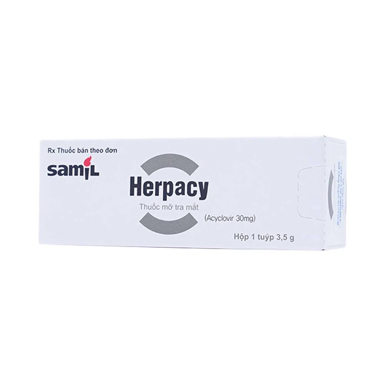 Thuốc Herpacy Samil 3.5 g dùng bôi mắt. Bôi 1 cm thuốc mỡ vào bên trong túi kết mạc dưới.