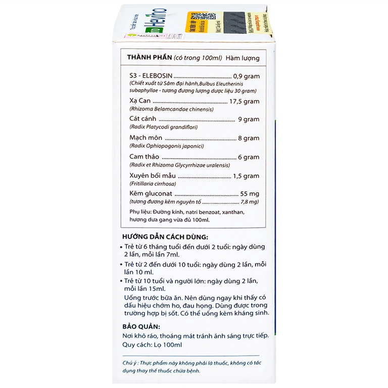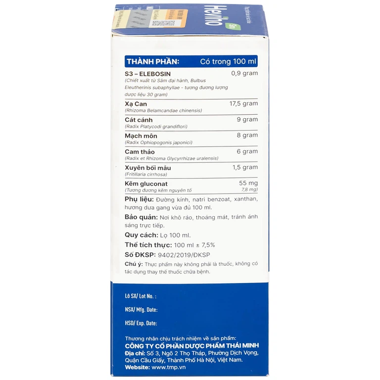 Xạ can, Cát cánh, Mạch môn, Xuyên bối mẫu, Kẽm Gluconat, S3-selebosin