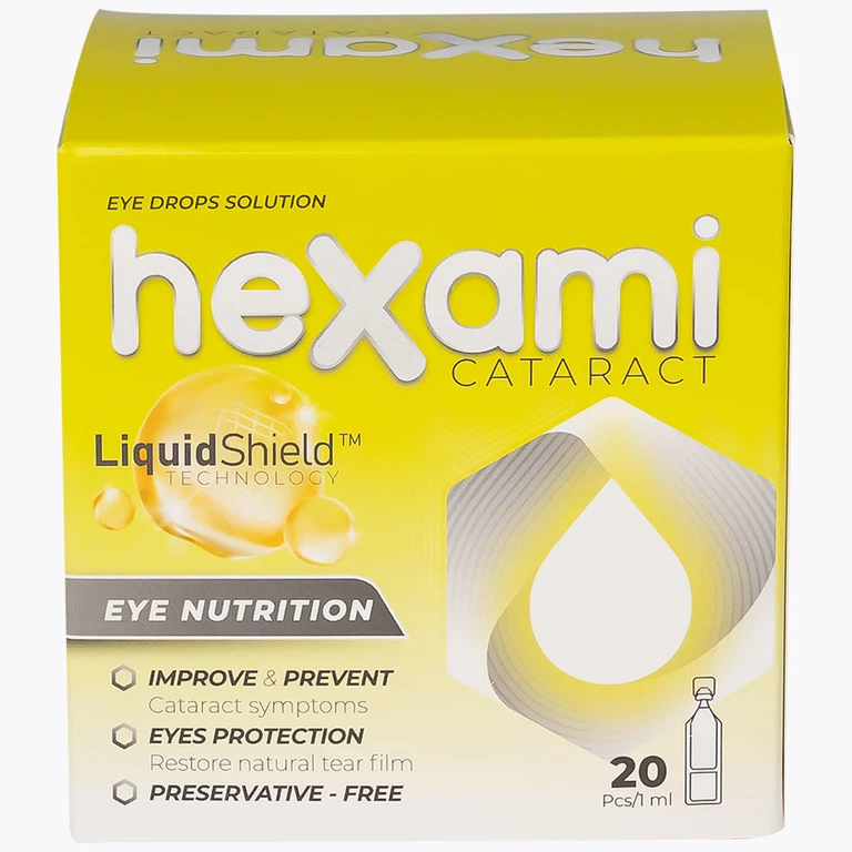Dung dịch nhỏ mắt Hexami Cataract hỗ trợ điều trị, làm giảm và làm chậm đục thủy tinh thể do tuổi tác.