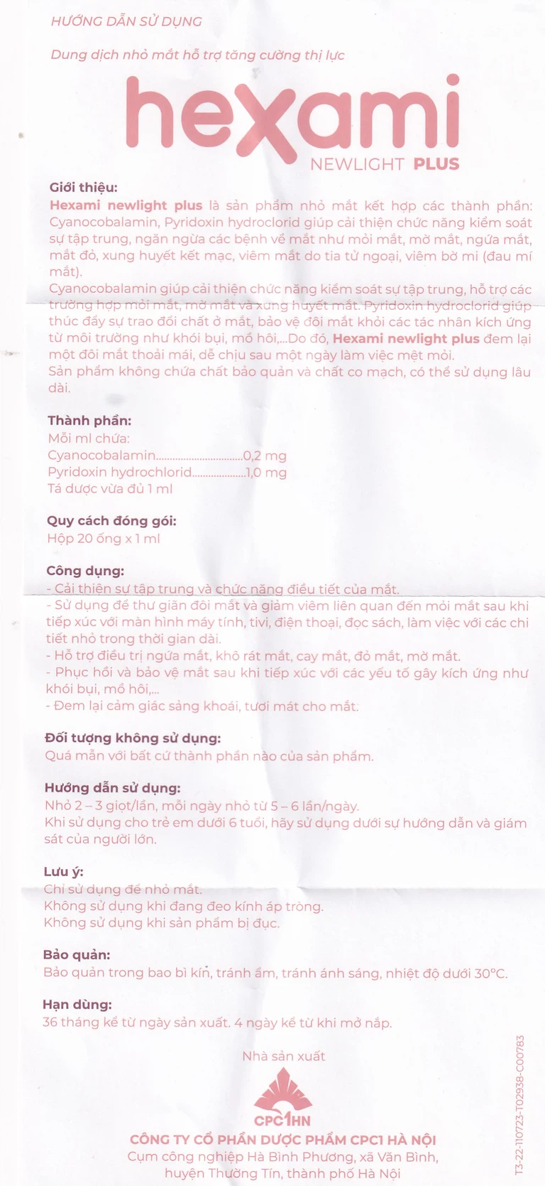 Cách dùng Dung dịch nhỏ mắt Hexami Newlight Plus