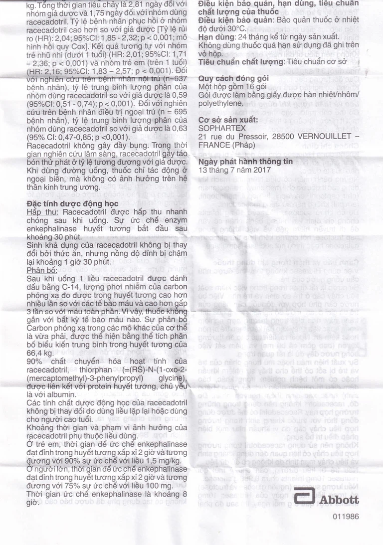 - Trong trường hợp điều trị được nguyên nhân gây tiêu chảy, có thể sử dụng Racecadotril như một liệu pháp điều trị bổ sung.