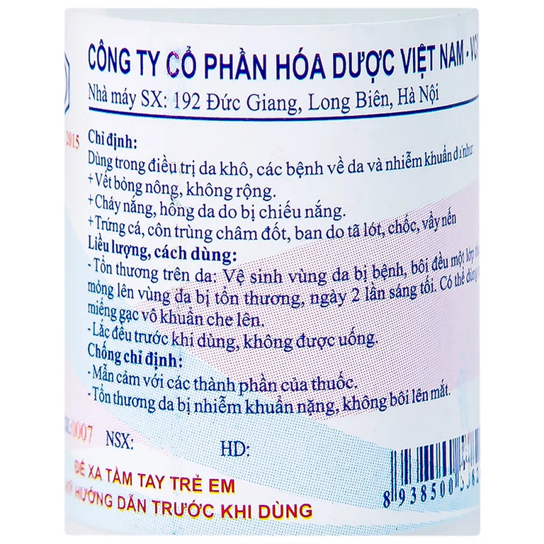 Thuốc bôi Hồ Nước có tác dụng làm săn da và sát khuẩn nhẹ, được dùng bôi tại chỗ để bảo vệ, làm dịu tổn thương chàm (eczema) và các chỗ trợt da nhẹ.