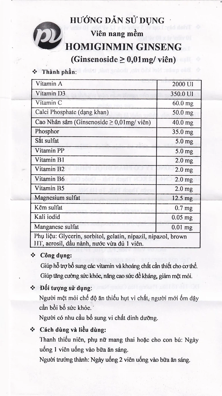 Homiginmin Ginseng là sản phẩm củaDược phẩm Phúc Vinh. Được thành lập từ 2003, đến nay, Phúc Vinh đã có những bước tiến vững chãi, ngày càng khẳng định vị thế và uy tín của mình trong ngành dược.