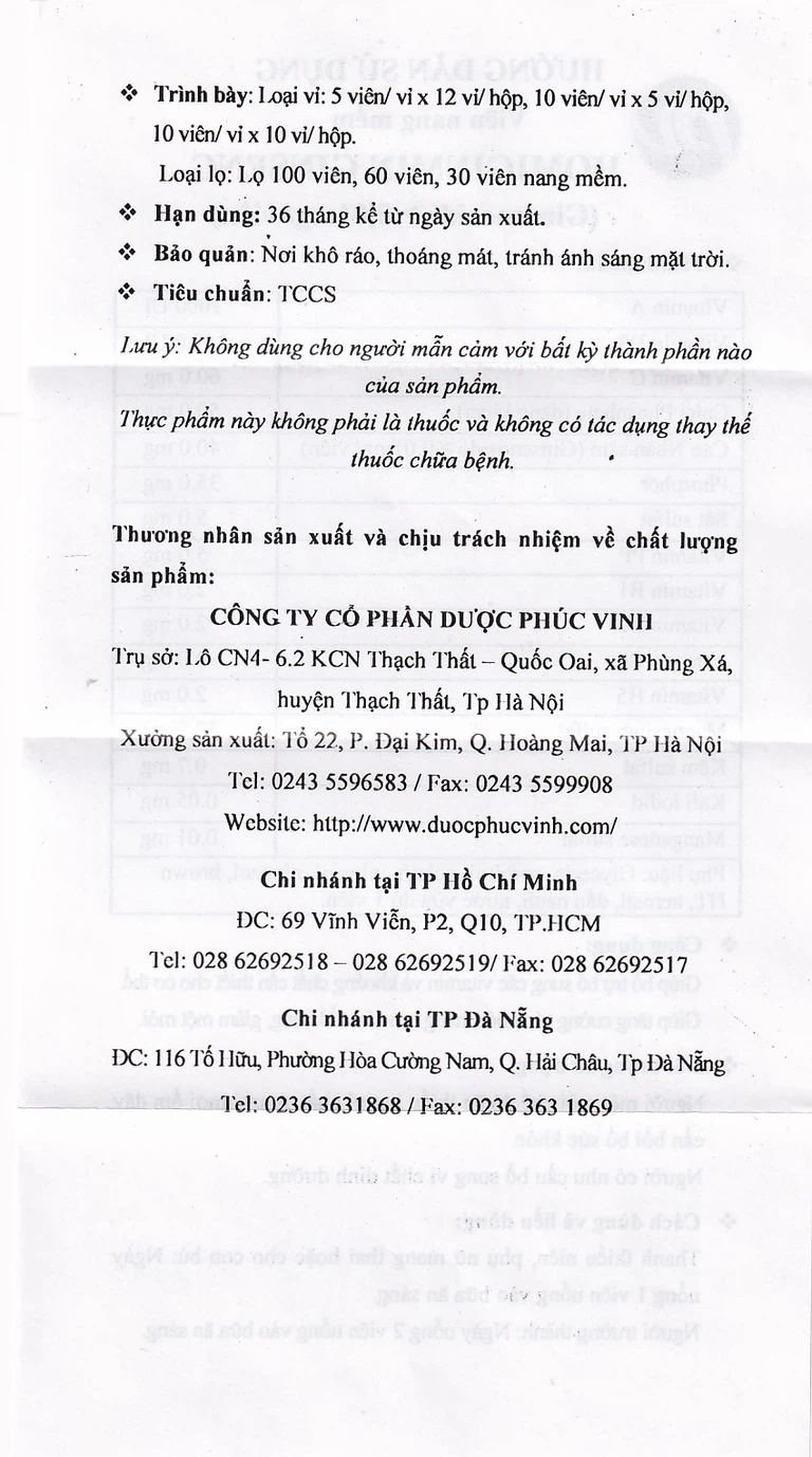 Phúc Vinh sở hữu nhà máy sản xuất dược phẩm với hệ thống máy móc hiện đại, quy trình sản xuất khép kín đạt tiêu chuẩn GMP – WHO theo khuyến cáo của Tổ chức Y tế thế giới; cùng với đội ngũ chuyên môn cao, giàu kinh nghiệm. Cam kết mang đến các sản phẩm chất lượng, hiệu quả, an toàn, giá thành hợp lý cho người tiêu dùng, giữ vững niềm tin trong lòng khách hàng.