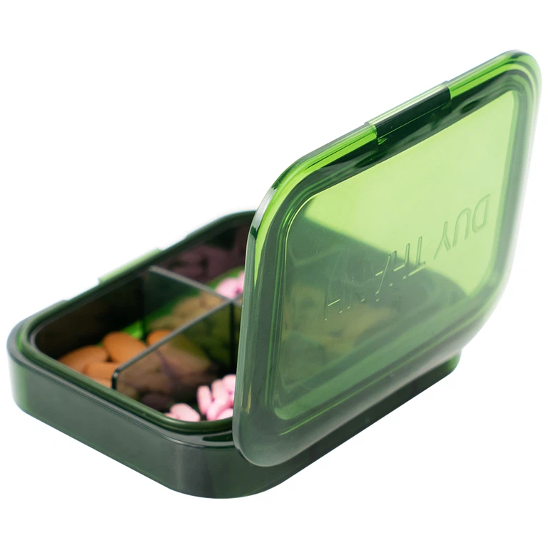 Hộp phân liều thuốc 4 ngăn A31 Duy Thành màu xanh là một khay nhựa nhỏ gọn, bao gồm 4 ngăn chứa thuốc riêng biệt, có nắp đậy chắc chắn, dùng để đựng thuốc được phân chia theo liều và các thời điểm khác nhau trong ngày. Đây là sản phẩm hỗ trợ đắc lực cho những người phải dùng thuốc hàng ngày và đặc biệt là các đối tượng lớn tuổi, có trí nhớ kém, thường xuyên bận rộn hoặc các bé nhỏ chưa thể chủ động uống thuốc đúng giờ khi đến trường.