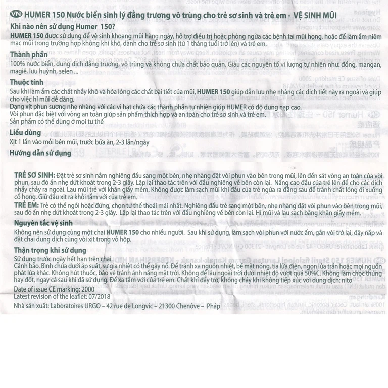 Cách dùng Dung dịch xịt mũi Humer 150 Nasal Hygiene