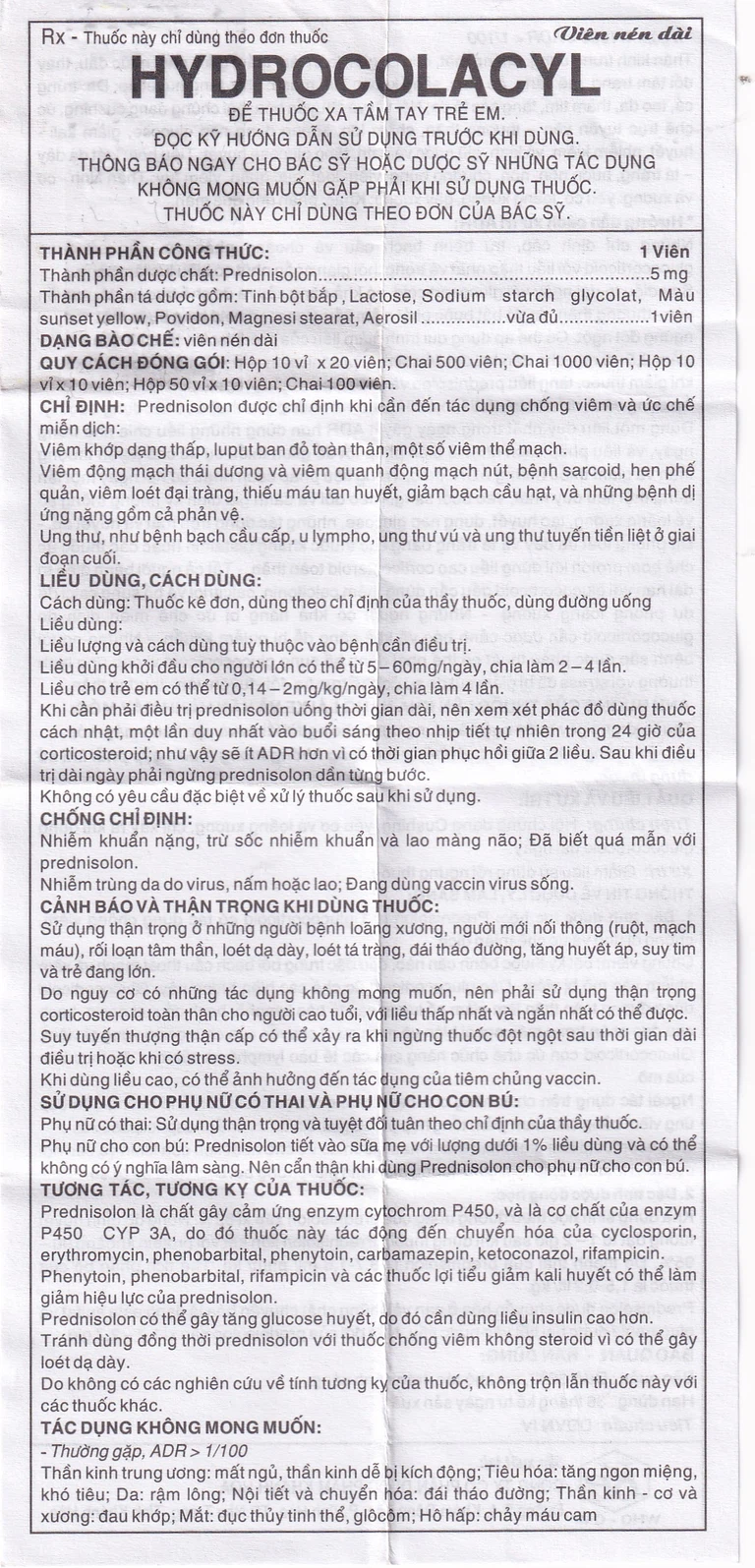 Cách dùng Thuốc Hydrocolacyl 5mg