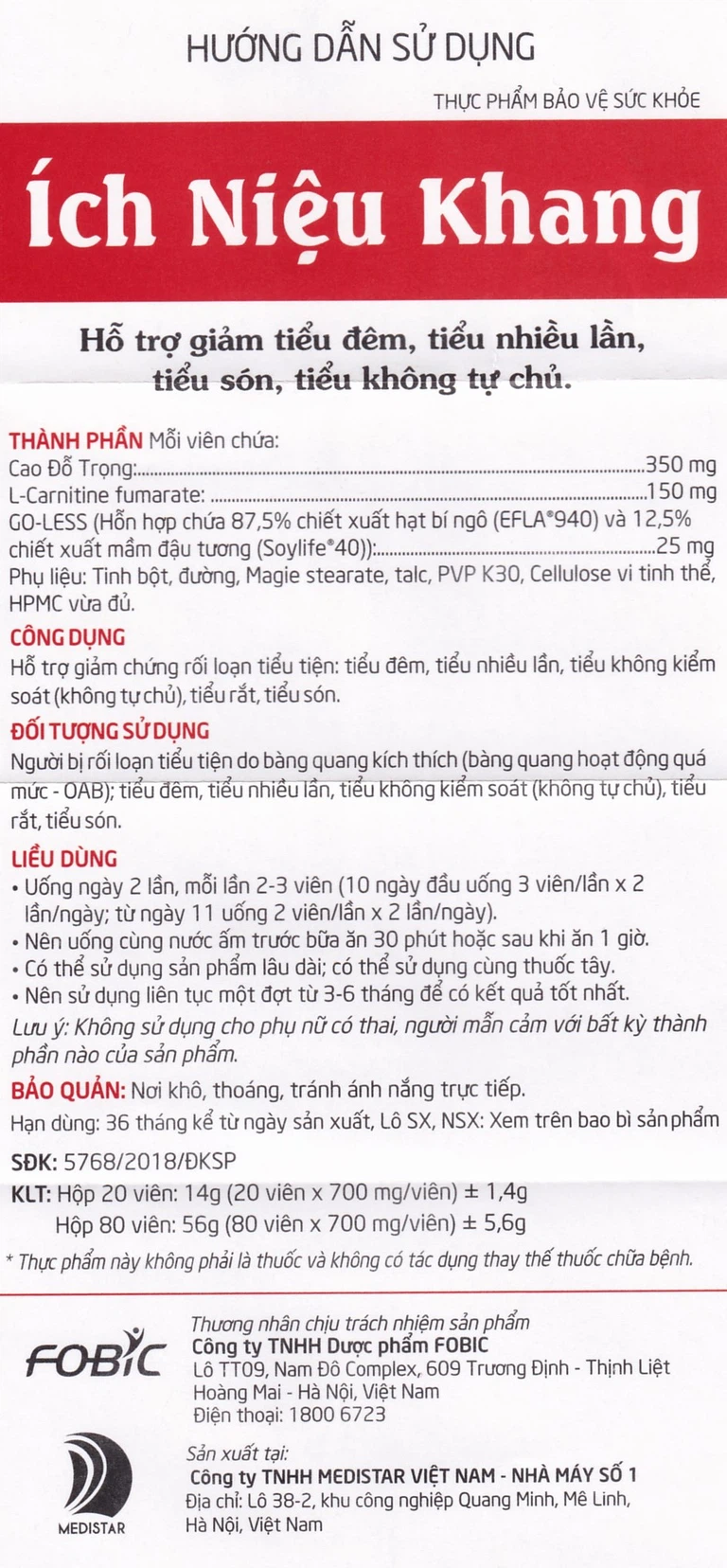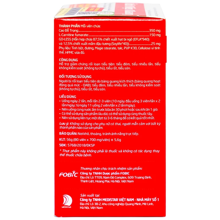 Viên uống Ích Niệu Khang Medistar hỗ trợ giảm tiểu đêm, tiểu nhiều lần, tiểu són (80 viên)