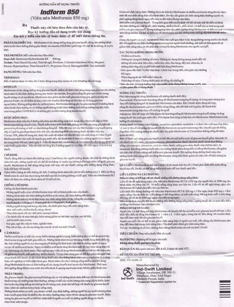 Công dụng của Thuốc Indform 850mg