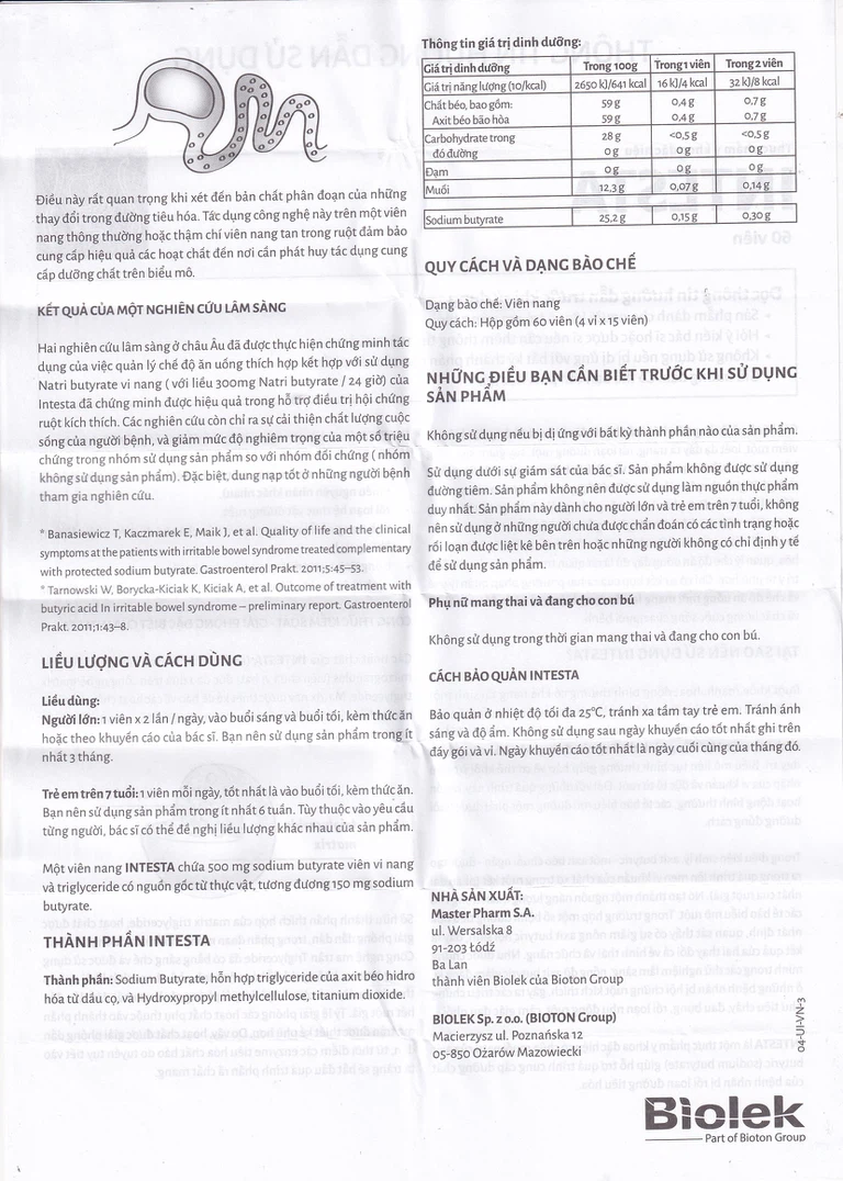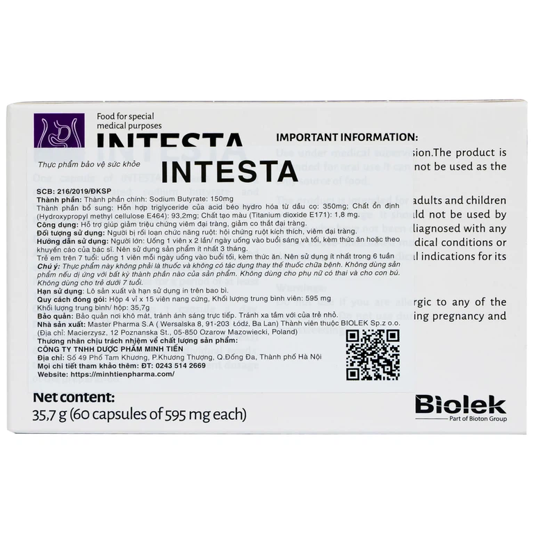 Viên uống Intesta Biolek 35.7g hỗ trợ điều trị viêm đại tràng (4 vỉ x 15 viên)