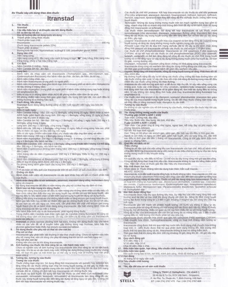 - Điều trị bệnh nấm da nhạy cảm với itraconazole (Trichophyton spp., Microsporum spp., Epidemophyton floccosum) như nấm da chân, da bẹn, da thân, da kẽ tay.
