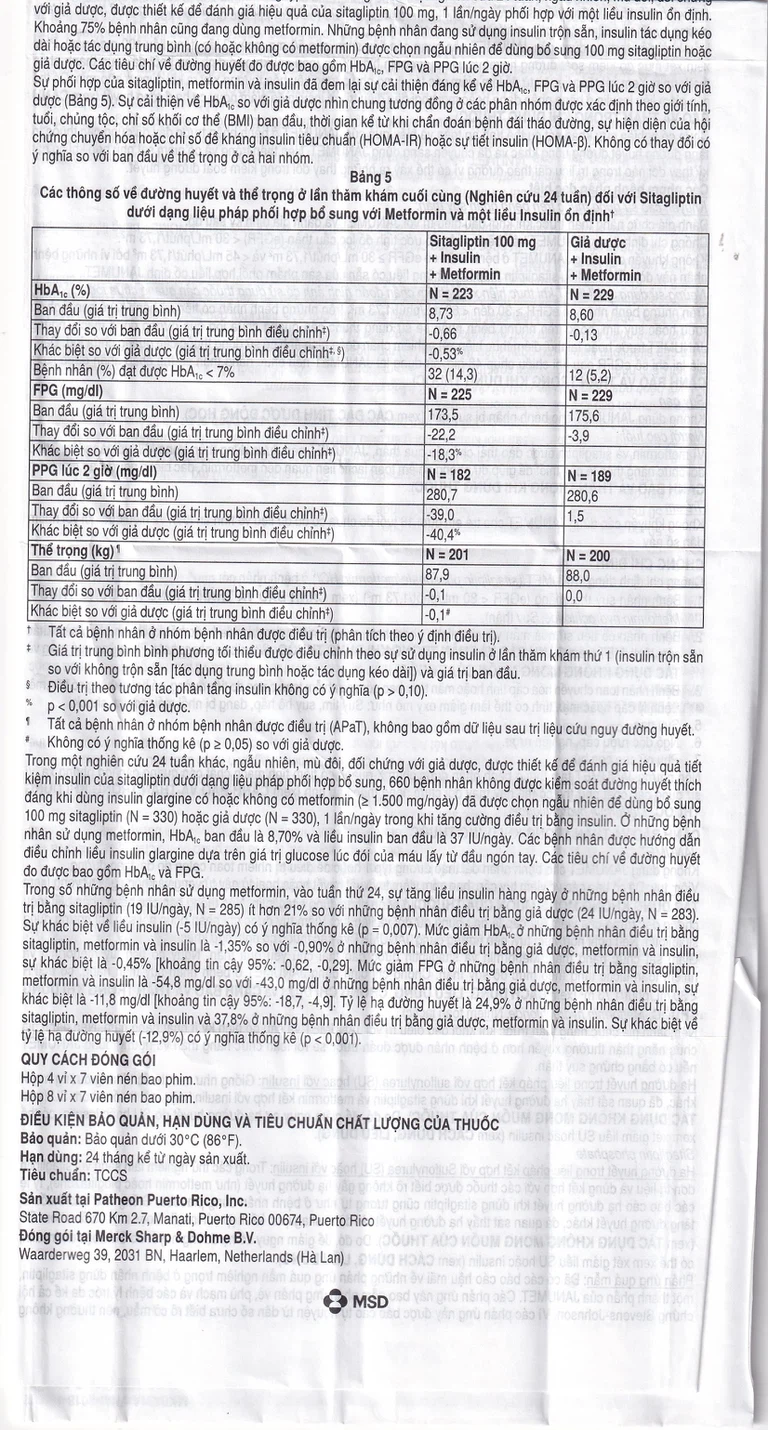 Hạ đường huyết trong liệu pháp kết hợp với sulfonylurea (SU) hoặc với insulin: Trong các thử nghiệm lâm sàng với sitagliptin đơn trị liệu và dùng kết hợp với các thuốc được biết rõ không gây hạ đường huyết (như metformin hoặc pioglitazone), tỷ lệ các báo cáo hạ đường huyết khi dùng sitagliptin cũng tương tự như ở bệnh nhân dùng placebo.