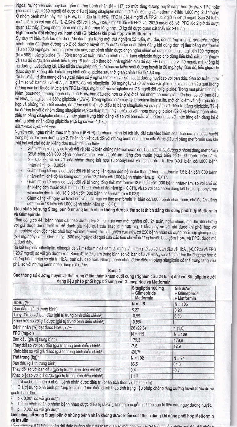 Liệu pháp kết hợp 3 thuốc với sulfonylurea khi bệnh nhân chưa kiểm soát được đường huyết với bất kỳ 2 trong 3 thuốc: Metformin, sitagliptin hoặc sulfonylurea.