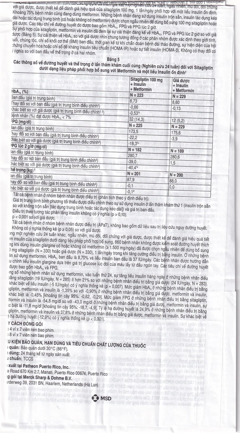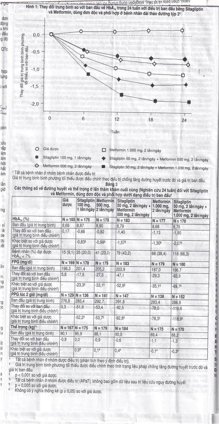 Bệnh nhân chưa thể kiểm soát đường huyết bằng metformin đơn độc ở liều tối đa dung nạp được hoặc đang dùng kết hợp metformin và sitagliptin liều riêng lẻ.
