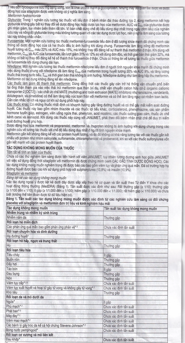 Viêm tụy: Đã có báo cáo về viêm tụy cấp, bao gồm viêm tụy xuất huyết hoặc hoại tử gây tử vong và không gây tử vong ở bệnh nhân dùng sitagliptin. Nên thông báo cho bệnh nhân biết triệu chứng đặc trưng của viêm tụy cấp là đau bụng dữ dội và liên tục. Viêm tụy được ghi nhận phục hồi sau khi ngưng dùng sitagliptin. Nếu nghi ngờ viêm tụy, nên ngừng dùng Janumet và các thuốc có nghi ngờ khác.