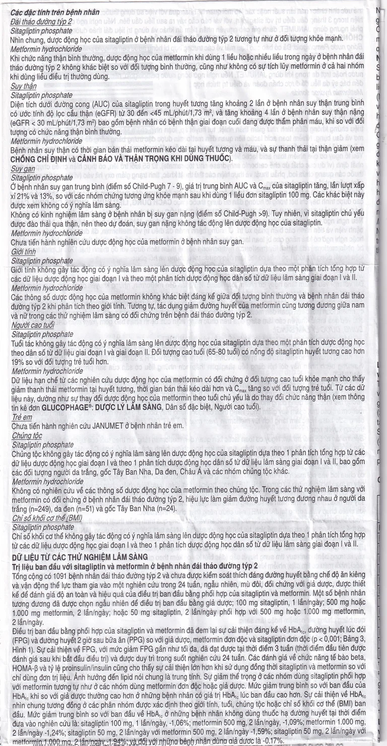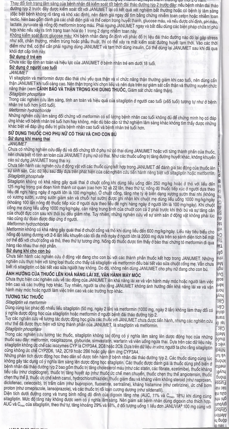 Vì sitagliptin và metformin được đào thải chủ yếu qua thận và vì chức năng thận thường giảm khi cao tuổi, nên dùng cẩn thận JANUMET khi tuổi càng cao. Nên thận trọng khi chọn liều và nên dựa trên sự giám sát cẩn thận và thường xuyên chức năng thận.
