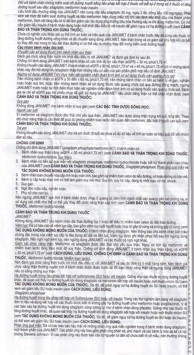 Ngừng sử dụng Janumet trước hoặc tại thời điểm thực hiện chiếu chụp có sử dụng thuốc cản quang có chứa iod ở những bệnh nhân có eGFR ≥ 30 đến < 60mL/phút/1,73m2, những bệnh nhân có tiền sử suy gan, nghiện rượu, suy tim hoặc những bệnh nhân sẽ sử dụng thuốc cản quang chứa iod theo đường động mạch. Đánh giá lại eGFR 48 giờ sau khi chiếu chụp và sử dụng lại Janumet nếu chức năng thận chấp nhận được.