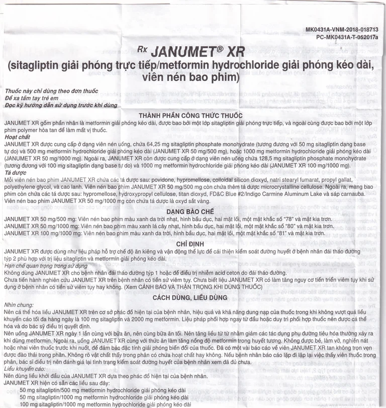 - 50 mg sitagliptin/1000 mg metformin hydrochloride giải phóng kéo dài.
