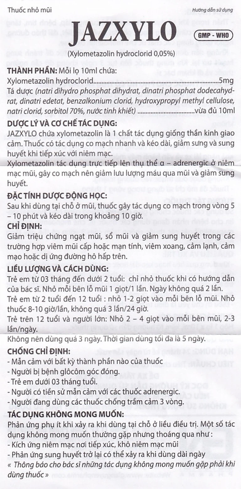 Cách dùng Thuốc nhỏ mũi Jazxylo