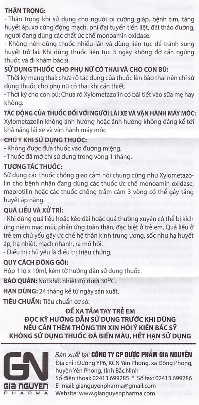 Chưa rõ Xylometazolin có bài tiết vào sữa mẹ hay không.