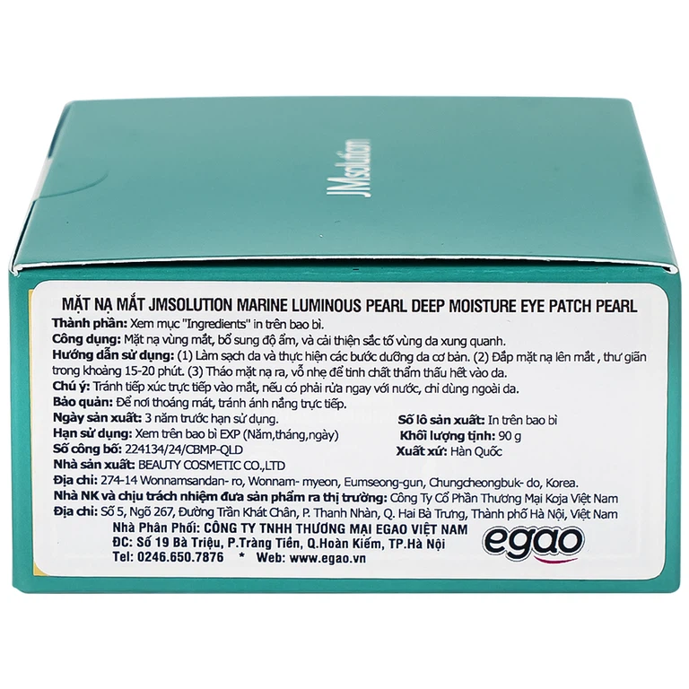 JMsolution Marine Luminous Pearl Deep Moisture Eye Patch Pearl được chiết xuất từ ngọc trai, là sản phẩm chăm sóc đặc biệt cho vùng da quanh mắt. Sản phẩm này được đánh giá cao về khả năng dưỡng ẩm, giữ ẩm cho da, làm da quanh mắt sáng hơn và giảm thâm quầng mắt.
