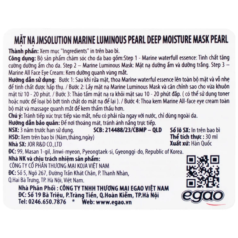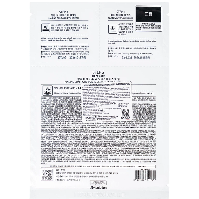 Hiệu quả của mặt nạ JMsolution Marine Luminous Pearl Deep Moisture Mask