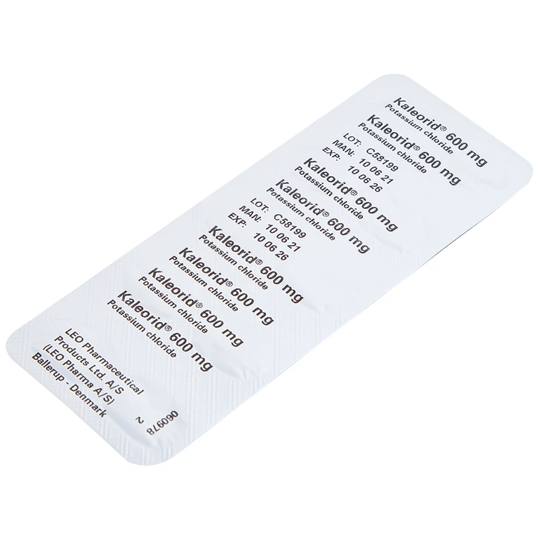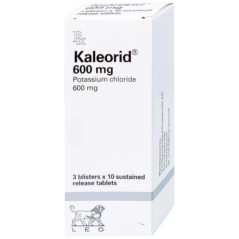 Thuốc Kaleorid là sản phẩm của Leo Pharmaceutical Products Ltd. A/S (Leo Pharma A/S), chứa hoạt chất Potassium Chloride, đây là thuốc dùng cung cấp kali trong các trường hợp thiếu hụt kali huyết.