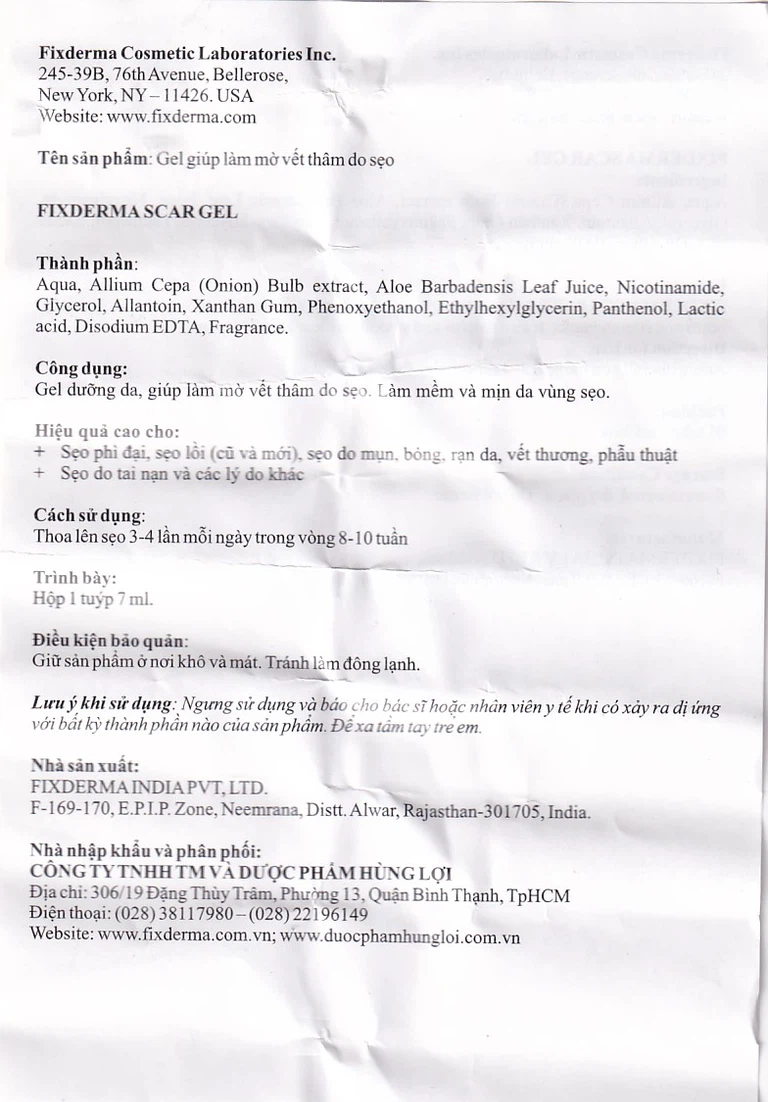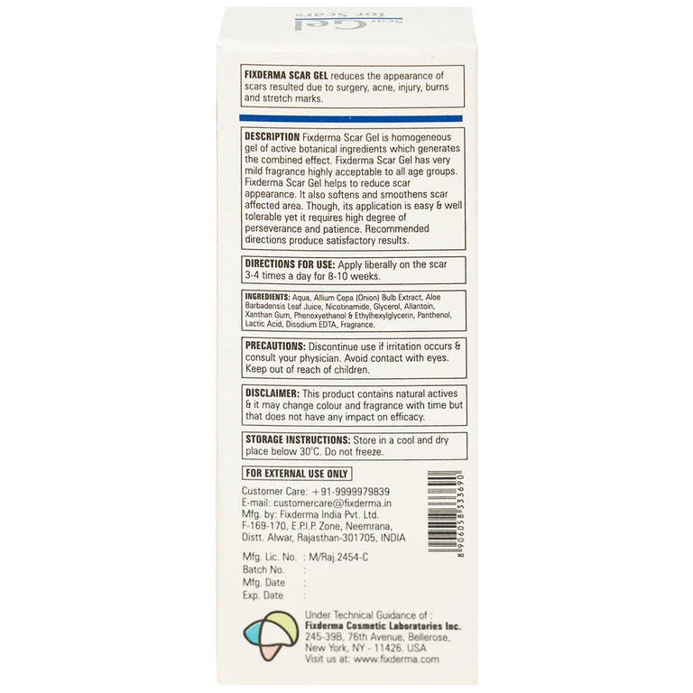 Fixderma Scar Gel là gel làm mờ sẹo đến từ thương hiệu Fixderma với công thức chứa thành phần thiên nhiên như củ hành tây, lô hội, cây mộc liên, giúp làm mờ sẹo do mụn, bỏng, rạn da, vết thương, phẫu thuật. Đồng thời giúp làm mềm, làm dịu vùng da bị ảnh hưởng bởi sẹo cùng kết cấu dạng gel thẩm thấu nhanh, không rít và dịu mát giúp tăng hiệu quả làm mờ sẹo nhanh chóng.
