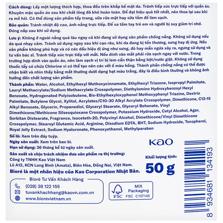Ngăn tia UV tối ưu nhờ phân tử chống nắng siêu nhỏ, bảo vệ da hoàn hảo mà không gây bết dính.