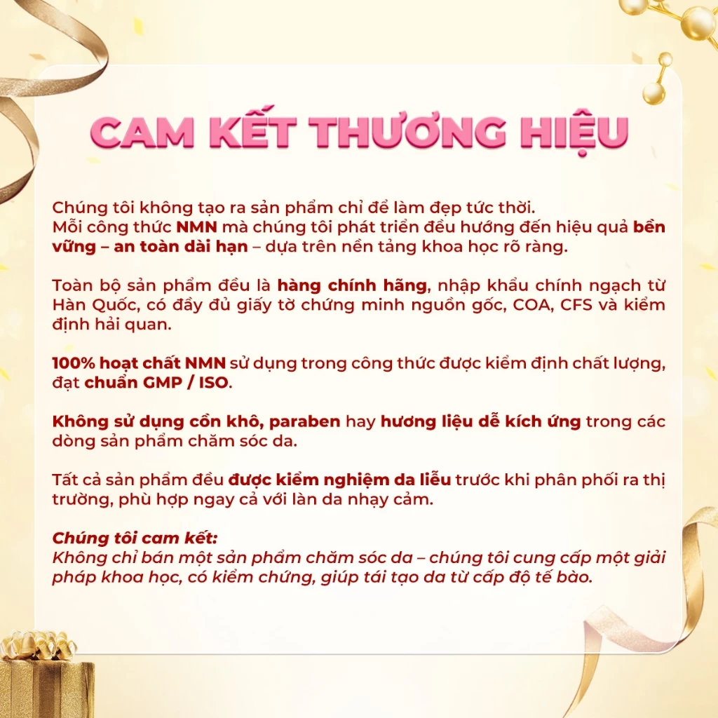 - NMN 1000ppm (Nicotinamide Mononucleotide): Là tiền chất của NAD+, một coenzyme quan trọng cho năng lượng và quá trình sửa chữa tự nhiên của tế bào, góp phần duy trì sự trẻ trung của làn da và làm chậm quá trình lão hóa.