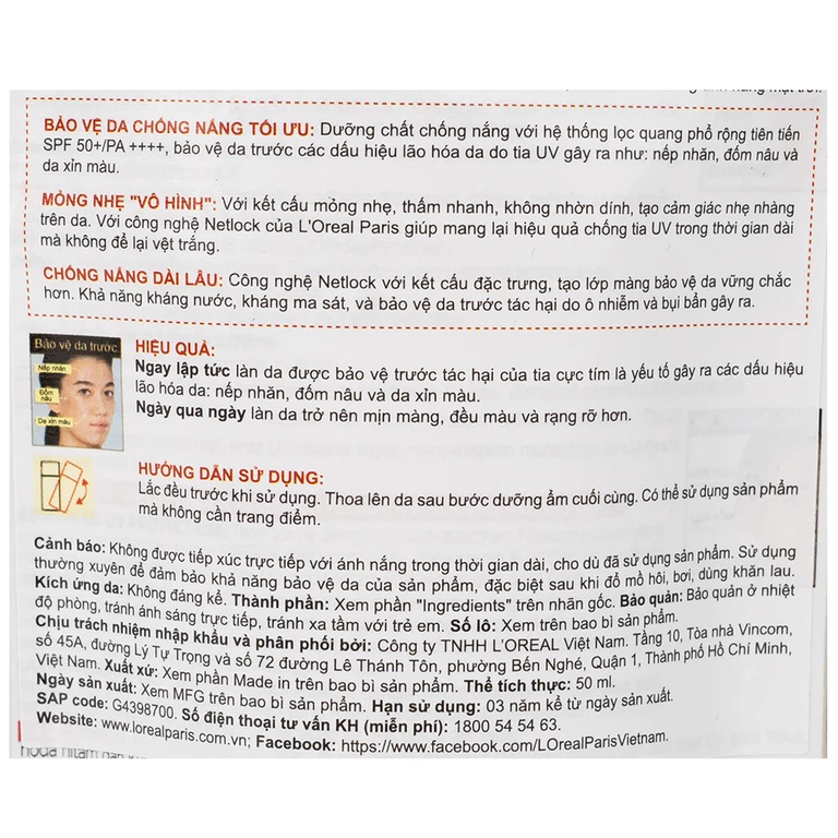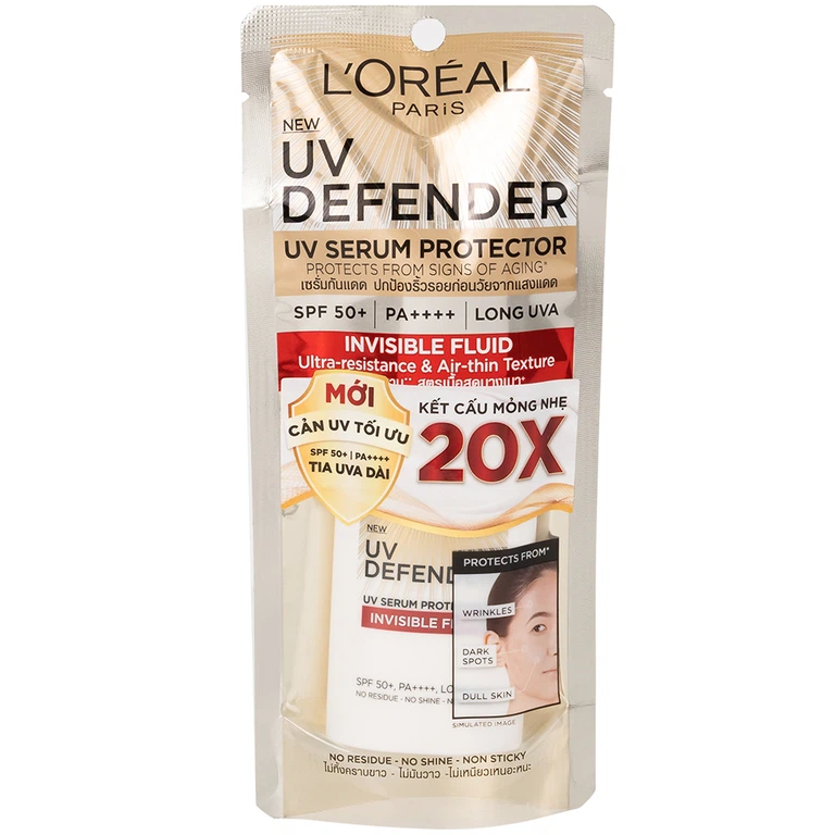 Kem chống nắng Defender UV Serum Invisible Fluid L’Oréal SPF50+ và PA++++ giúp ngăn ngừa lão hóa, đốm nâu (50ml)