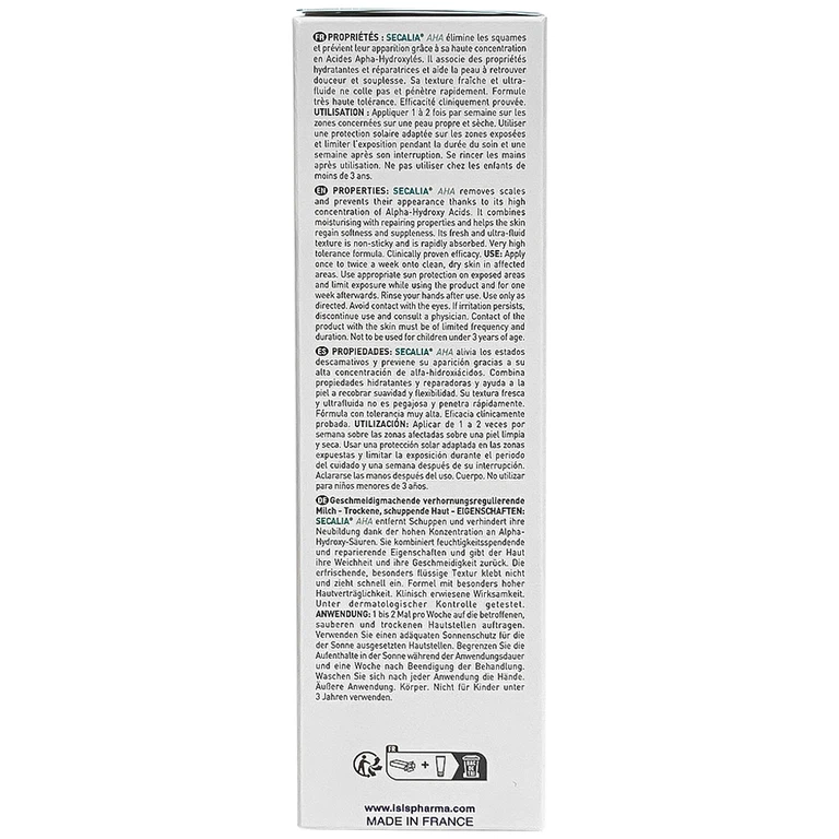 Isis Pharma Secalia AHA giúp dưỡng ẩm, làm mềm, giảm khô da, giảm kích ứng.