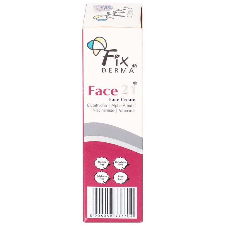 Với thành phần lành tính, Fixderma Face21 Cream giúp cải thiện màu sắc làn da chỉ sau 14 ngày. Chất kem mướt mịn, thẩm thấu nhanh, khô thoáng không gây bết dính. Sản phẩm phù hợp cho cả làn da khô ráp và da hỗn hợp thiên dầu.