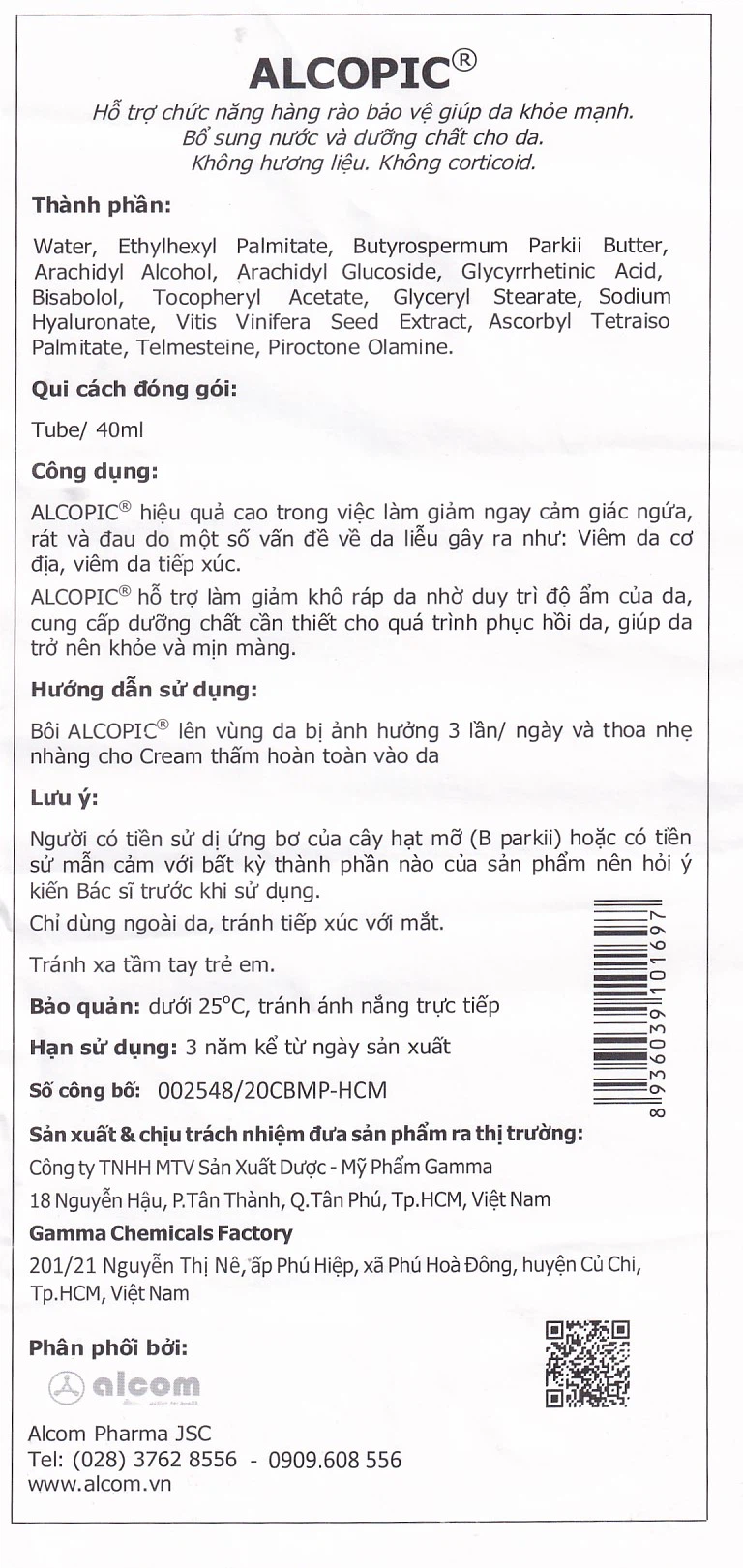 Kem Alcopic Gamma giảm ngứa, rát, đau do viêm da cơ địa, viêm da tiếp xúc (40ml)