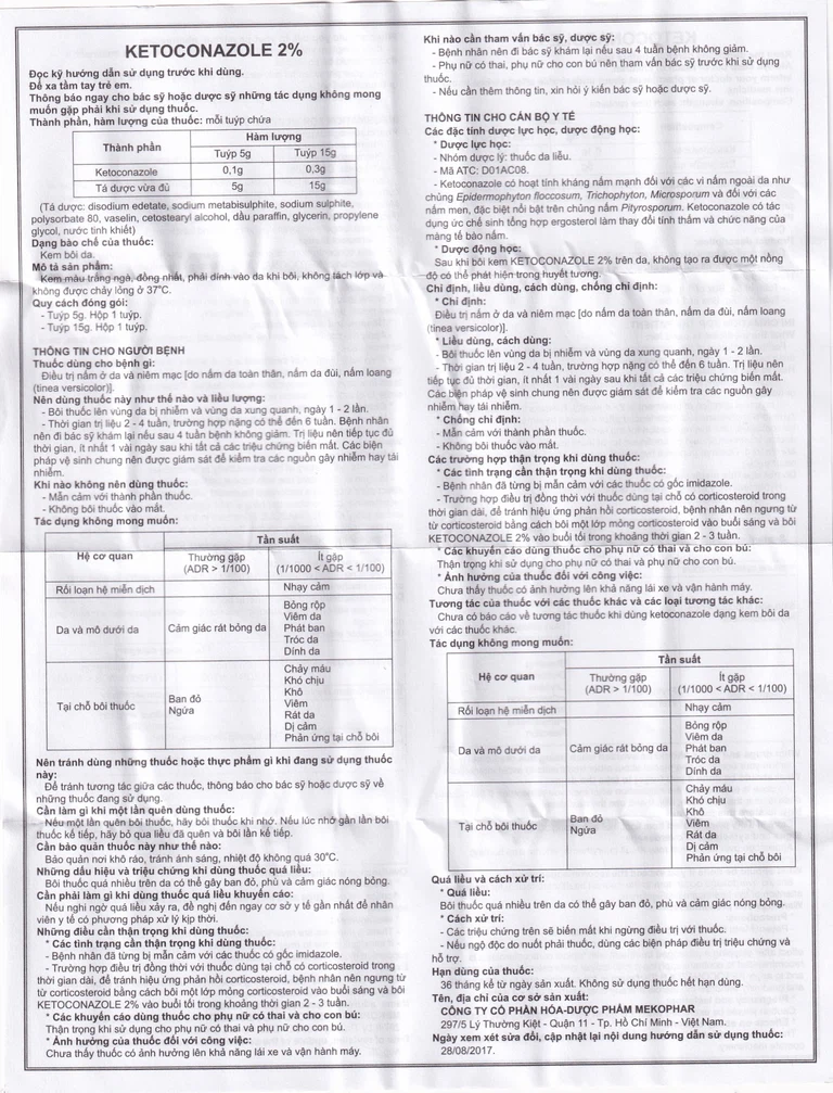 Thành phần của Kem bôi da Ketoconazole 2%