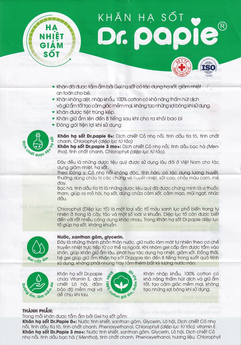 - Tham khảo sản phẩm khăn hạ sốt Dr.Papie 0+ cho trẻ từ 0 tháng tuổi.