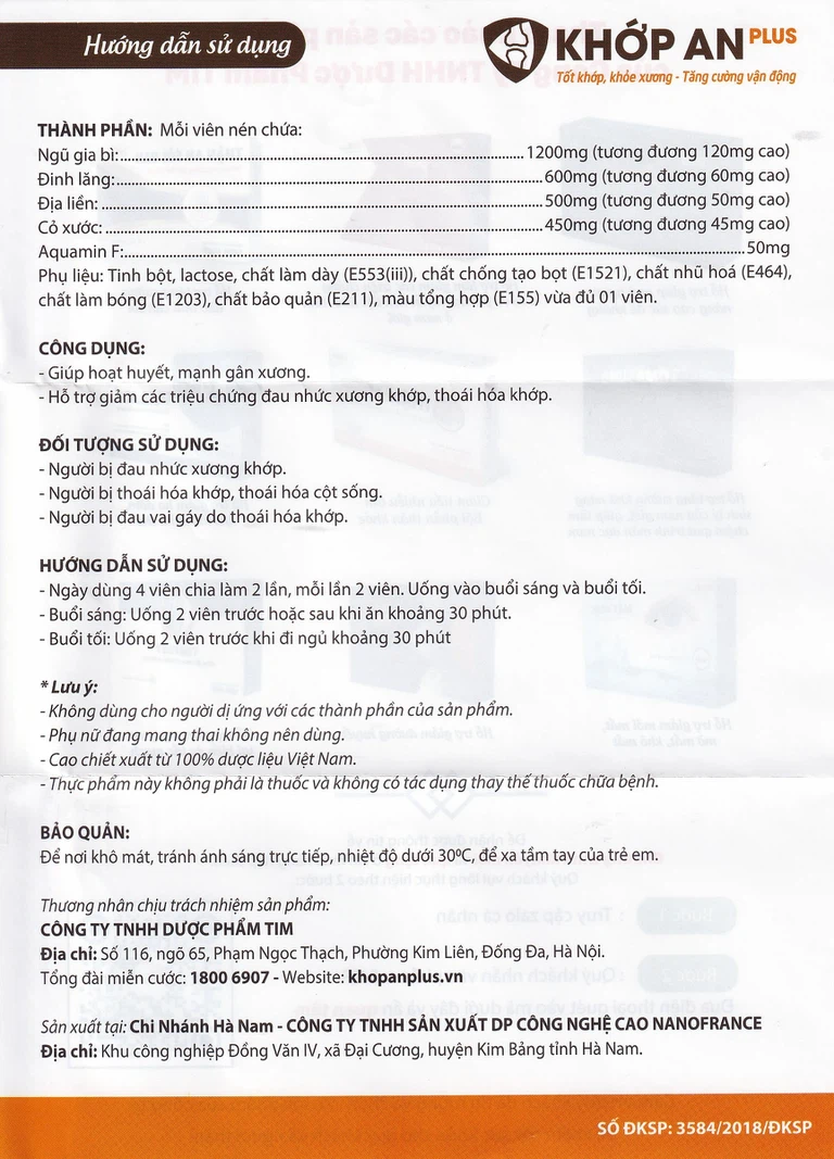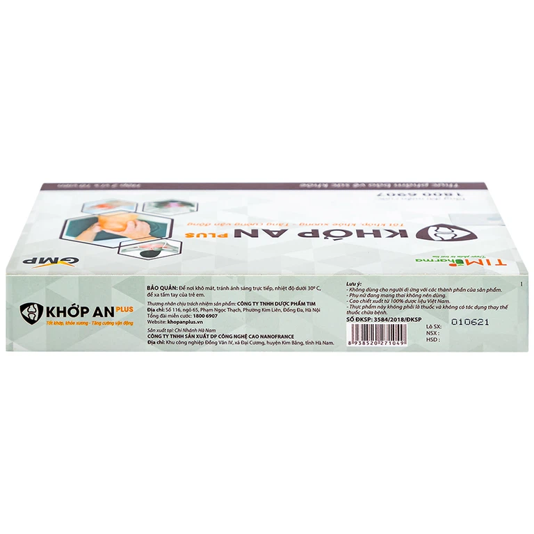 Khớp An Pluslà sản phẩm doDược phẩm TIMchịu trách nhiệm và được sản xuất tạiDược phẩm Công nghệ cao NanoFrance. Mong muốn mang đến cho khách hàng những sản phẩm kết hợp giữa tinh hoa truyền thống và y học hiện đại, NanoFrance không ngừng tìm kiếm, ứng dụng các nghiên cứu khoa học và công nghệ hiện đại vào sản xuất để tối ưu hiệu quả của sản phẩm.
