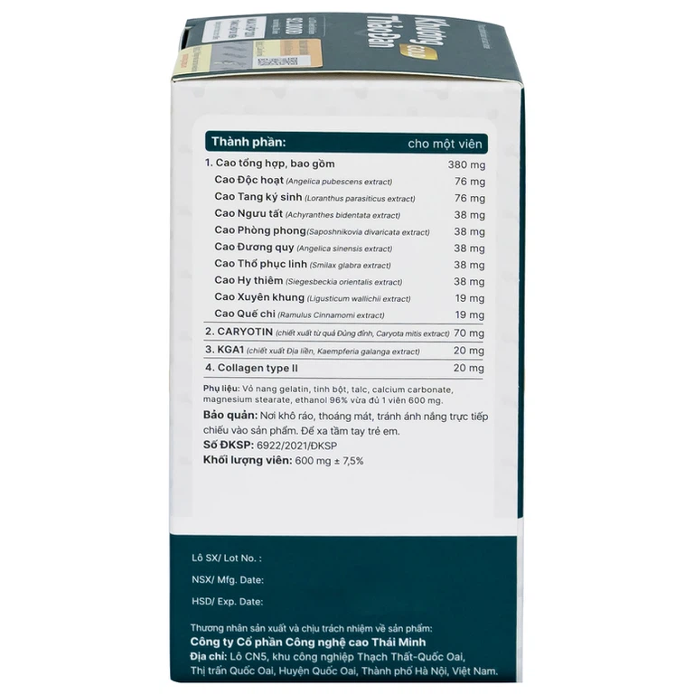 Thành phần của Viên xương khớp Khương Thảo Đan Gold