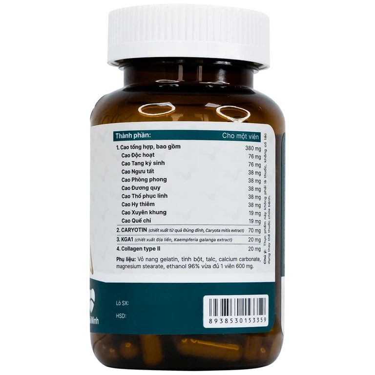 Caryotin: Có tác dụng giảm đau kháng viêm tận gốc, đồng thời giúp tái tạo, phục hồi, sản sinh tế bào sụn khớp mạnh mẽ, ngăn ngừa quá trình thoái hóa sụn khớp.
